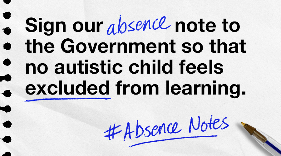 Through our ‘absence notes’ campaign, we’re shining a light on the many reasons autistic young people miss out on their right to education. Instead of parents writing to schools, autistic young people and their families are writing their own ‘absence note’ to the Government to show what absence really looks like.